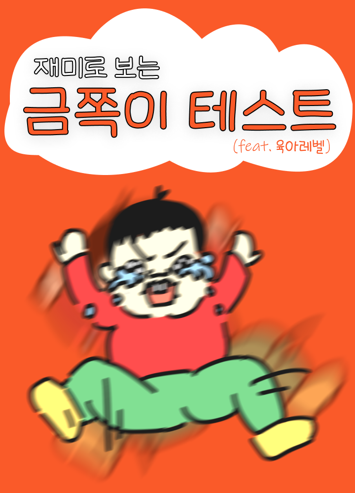 내가 만일 금쪽이라면?? 내 육아 레벨은 몇일까? 궁금하다면 바로 금쪽이 테스트 플레이해보세요! 레벨 0부터 레벨 999까지!! 저는 타인의 부탁을 거절하지 못하는 금쪽이네요 ^^